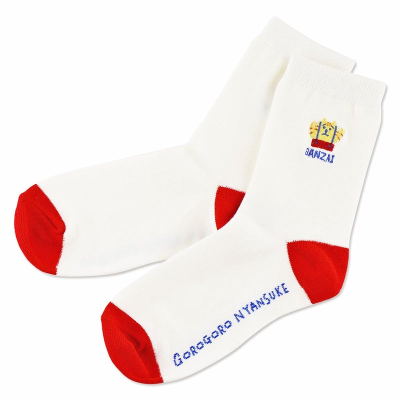 大人気のごろごろにゃんすけがワンポイントで描かれているクルーソックスです。
