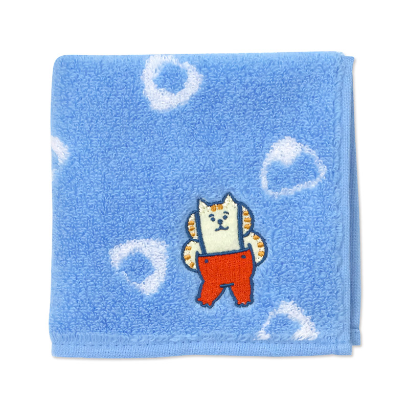 にゃんすけの刺繍が入っているのがポイントの、かわいいタオルハンカチです。