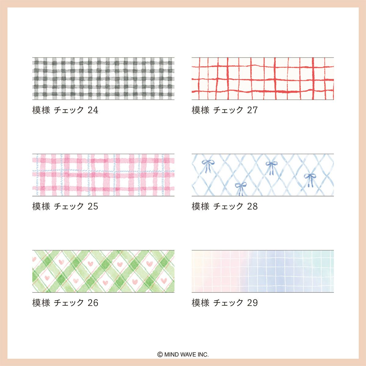 他の画像を見る お得なコンプリートセット♪ 【まとめ買い】マスキングテープ 模様 チェック (全6種類) ¥ 1,485 税込 販売期間 2026/03/13 12:00 〜 詳細を見る お気に入りに登録する