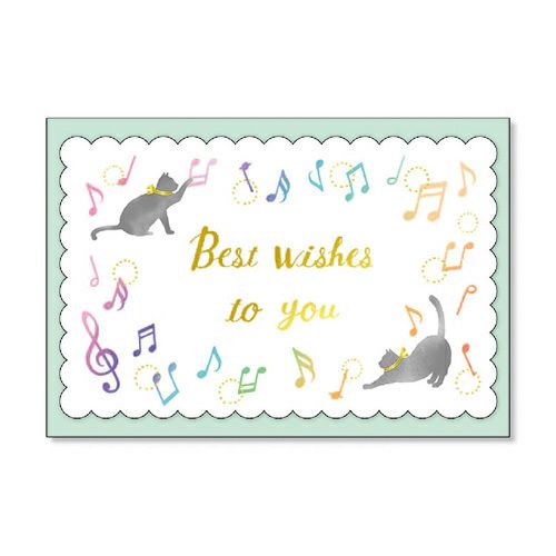 封筒付きミニメッセージカード 54463 猫と音符